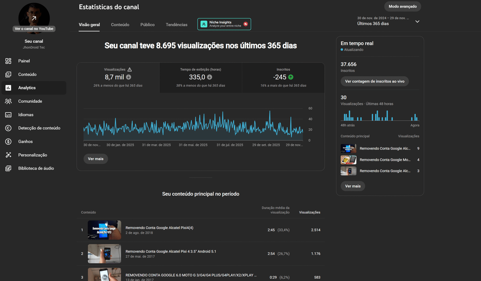 Canal YouTube de Entretenimento – 81k de Inscritos / Orgânico