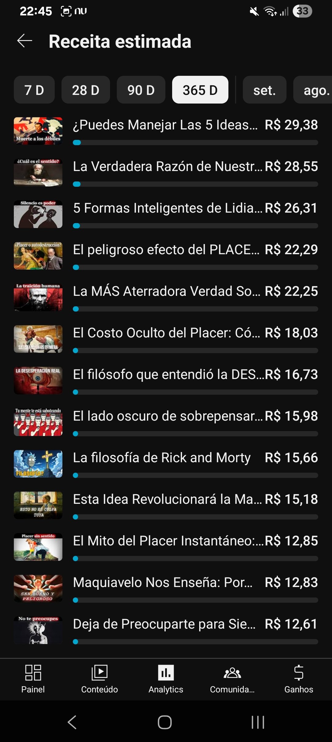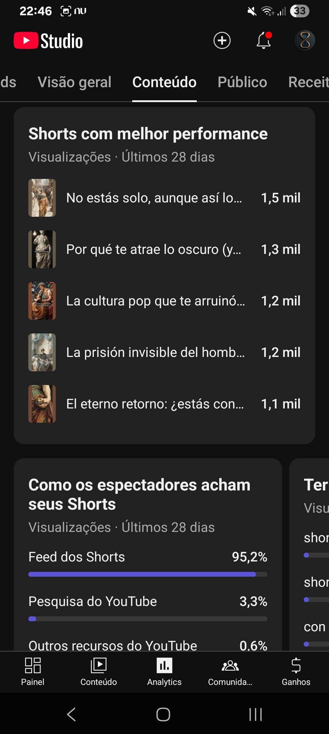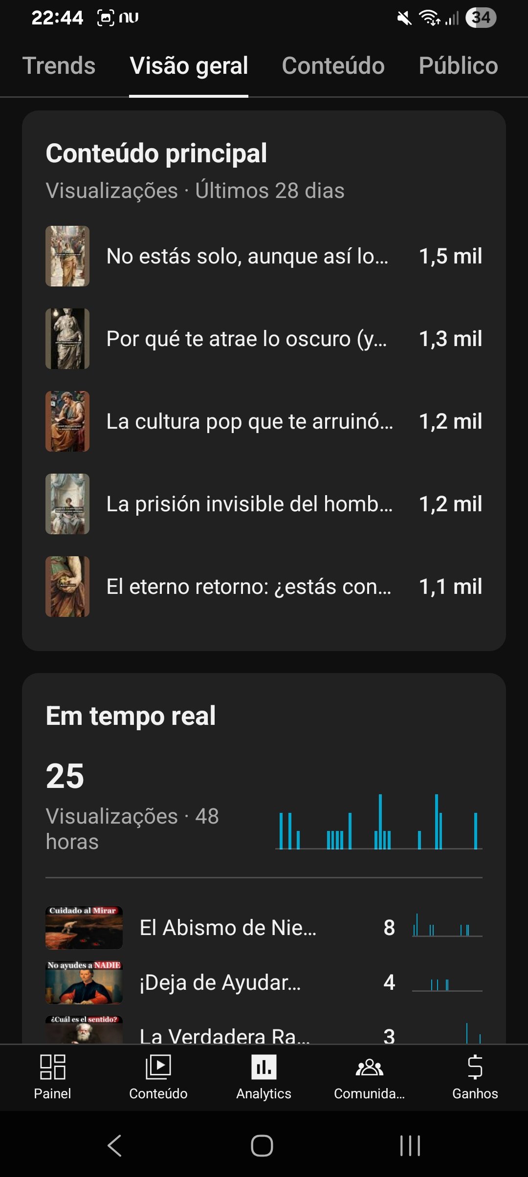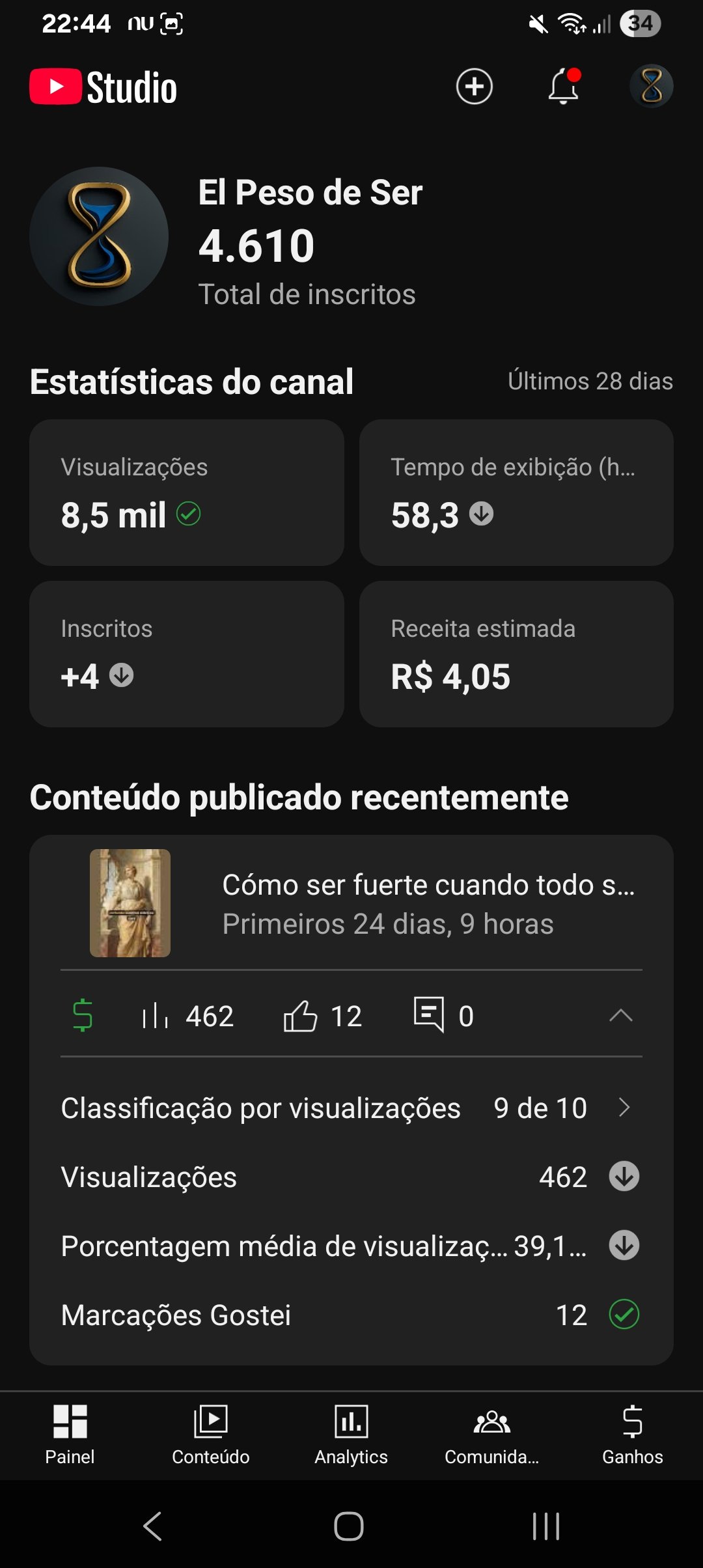 ✳️ Canal de YouTube em espanhol com 4.600 inscritos, totalmente monetizado, focado em filosofia e psicologia.