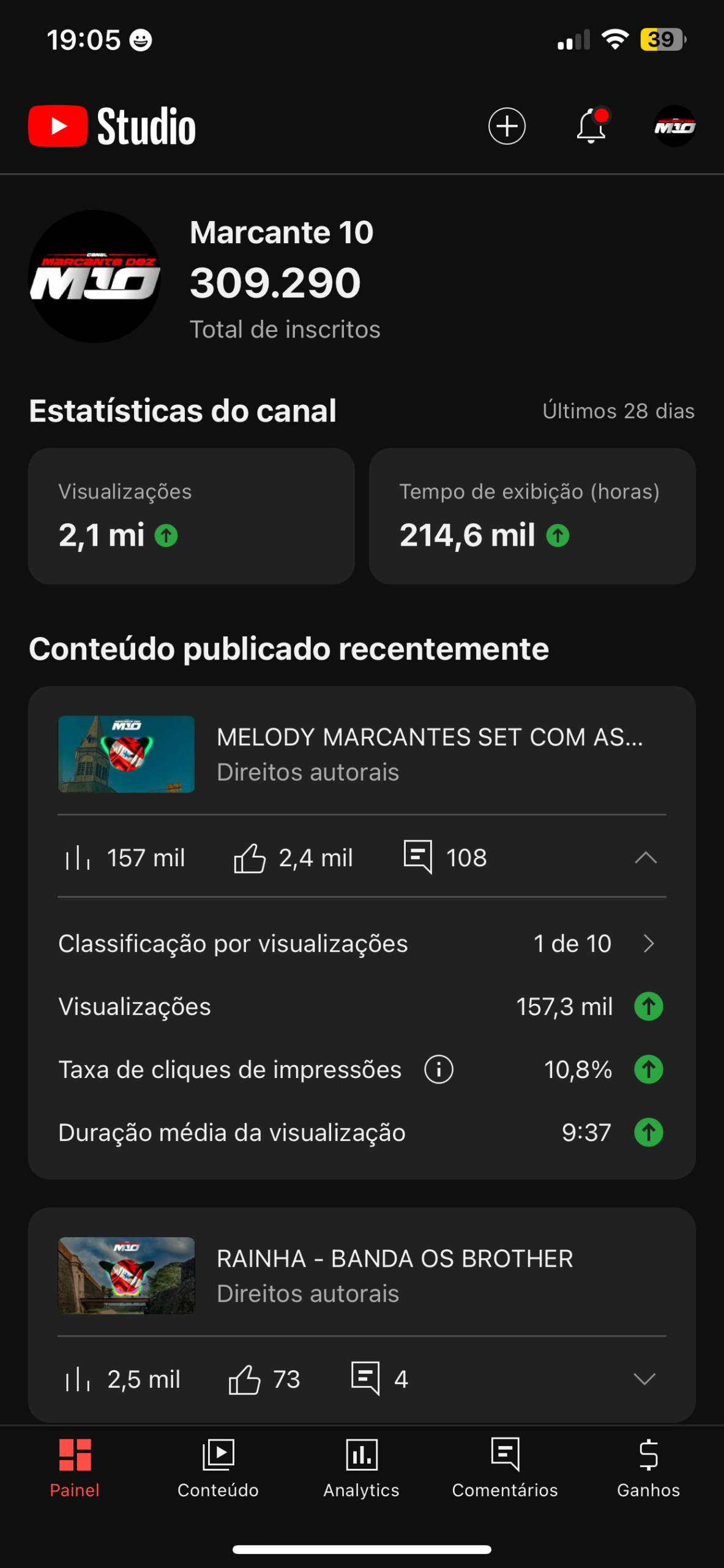 Canal Marcante 10 com 309 Mil Inscritos + Instagram com 46 Mil Seguidores