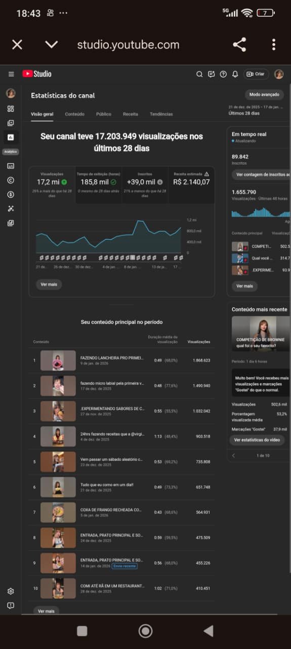 ✔ Canal grande e consolidado