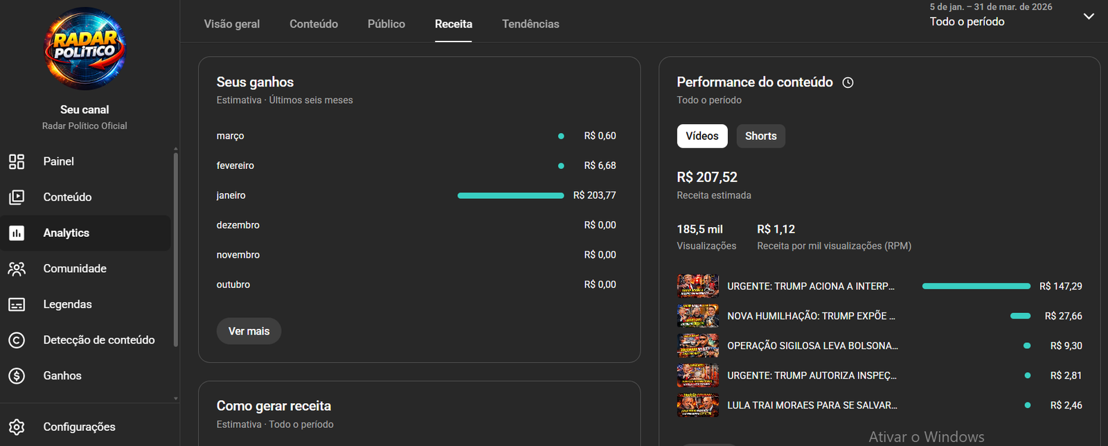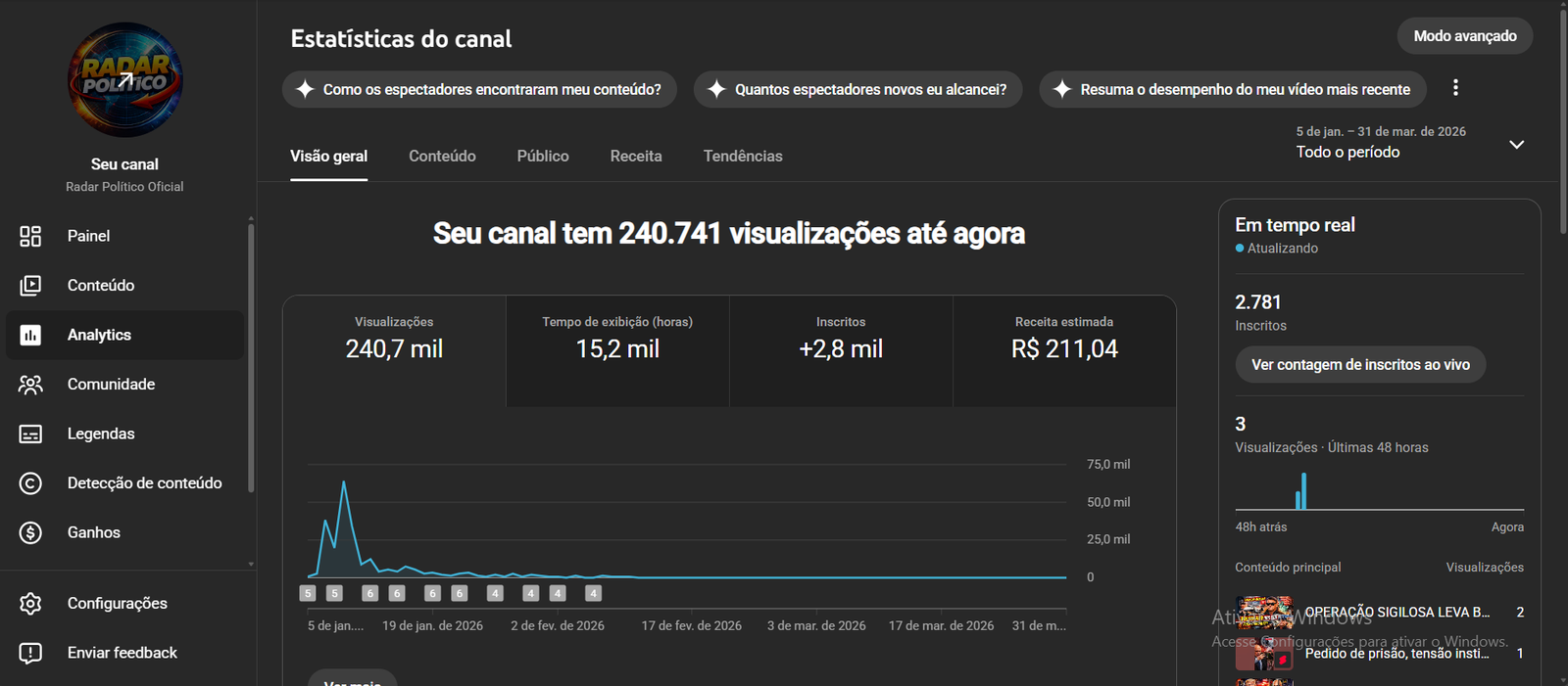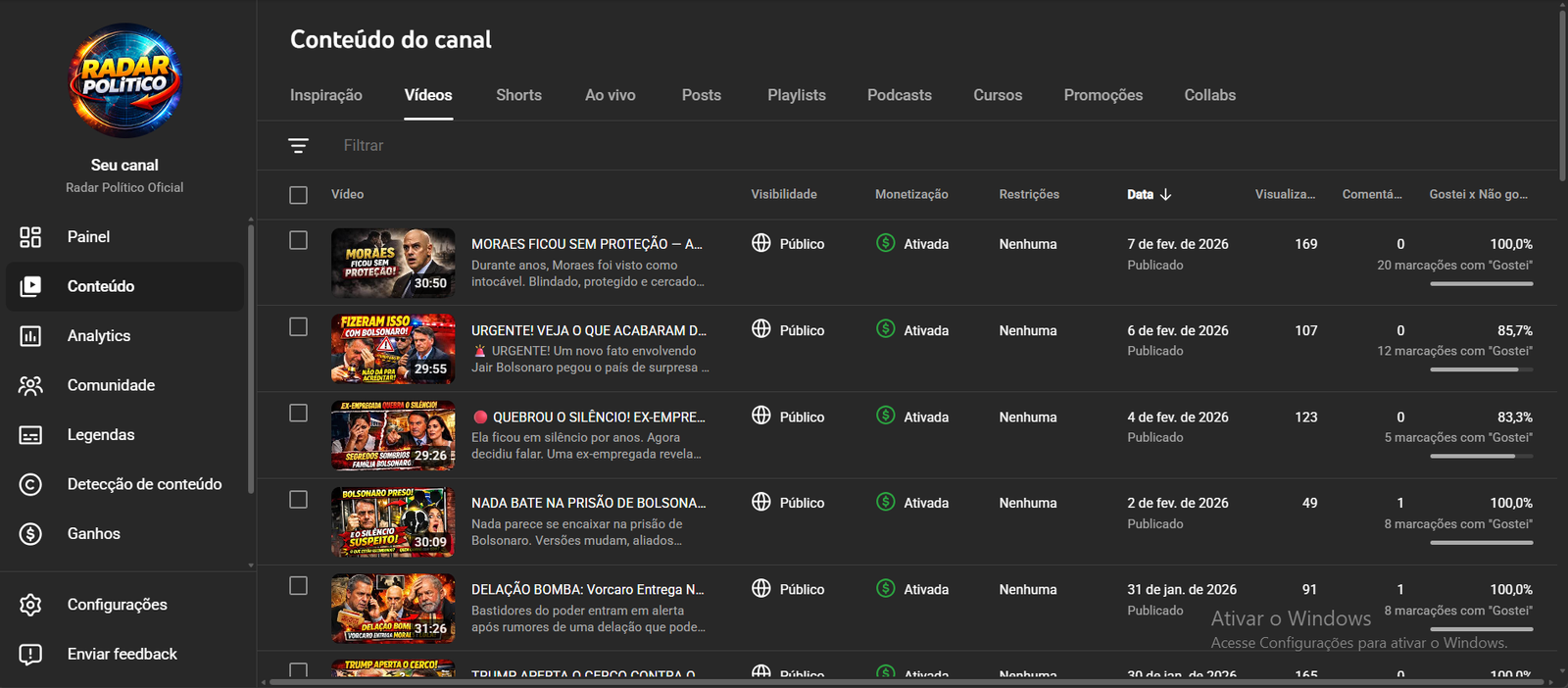 - Link da Conta: https://www.youtube.com/@RadarPol%C3%ADticoOficial-j8o