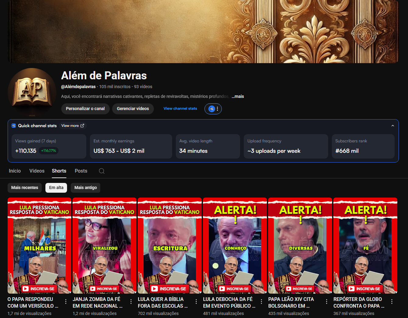 Canal YouTube de Entretenimento – 81k de Inscritos / Orgânico