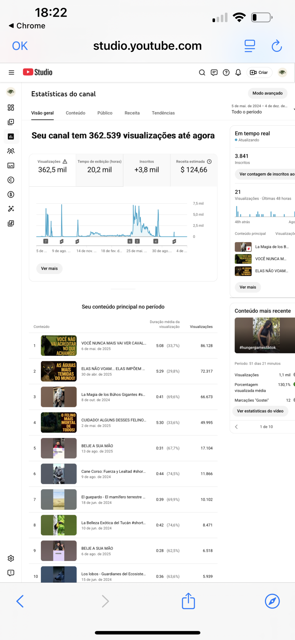 Canal Monetizado fatos milenar 263 mil inscritos • 114 vídeos + de 36mi views