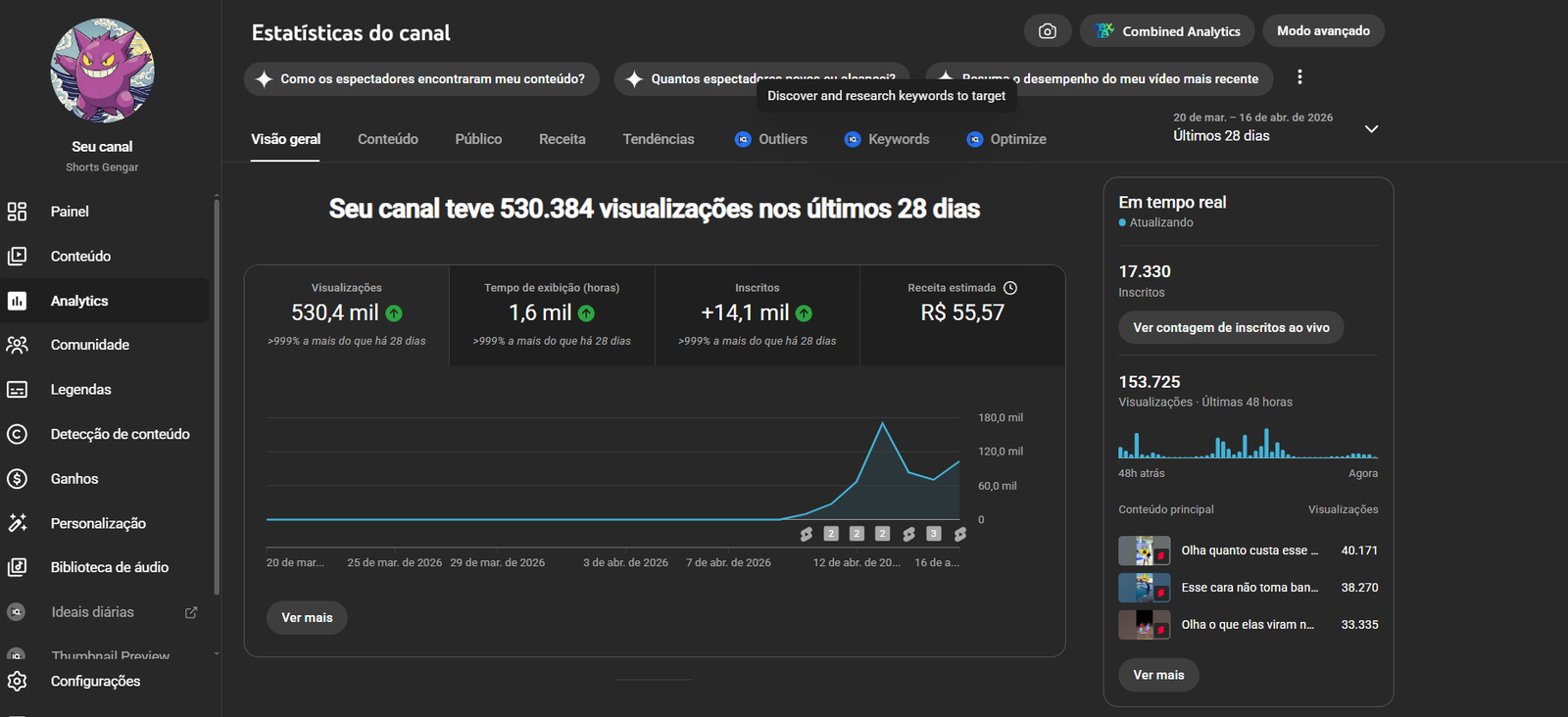 Canal Monetizado com quase 20k de inscritos