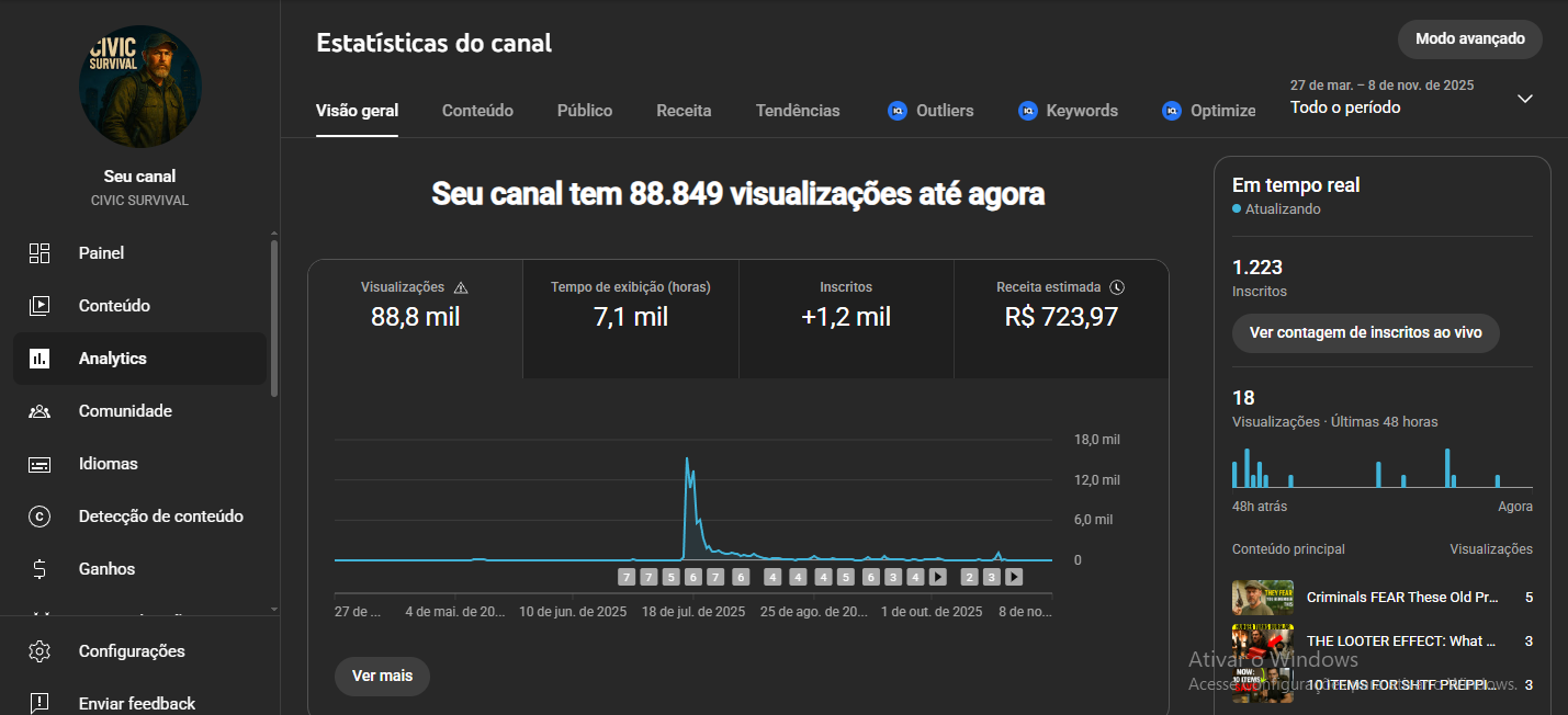 Canal 100% em inglês, voltado para o público prepper dos EUA, com 1.220 inscritos e mais de 80.000 visualizações.