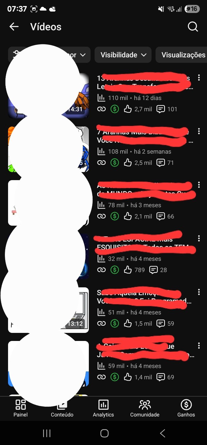 A maior partes dos vídeos que posto bate 100k é só ver pelos prints, os videos no canal estão como não listados ( não afeta nada no canal )