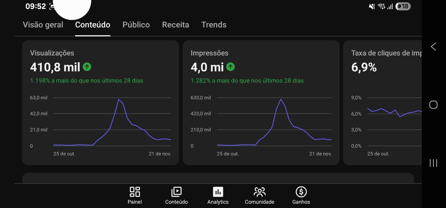 O canal já tem 5 milhões de impressões com uma taxa de 7% de cliques