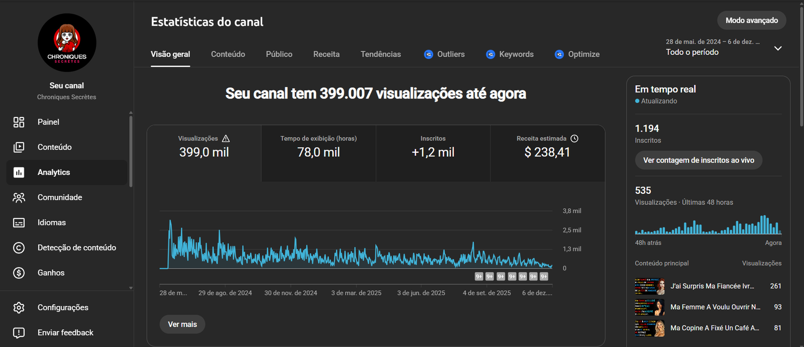 Ótima oportunidade para quem busca um canal já estabelecido, monetizado, com credibilidade, histórico sólido, grande potencial de escala e até mudar de nicho.