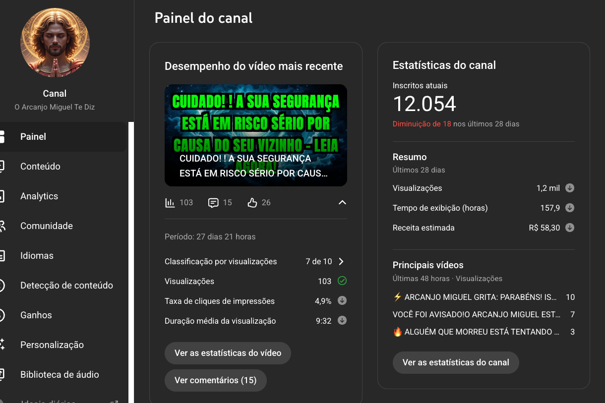 Canal MONETIZADO mensagem dos Anjos em Russo com 19.800 inscritos