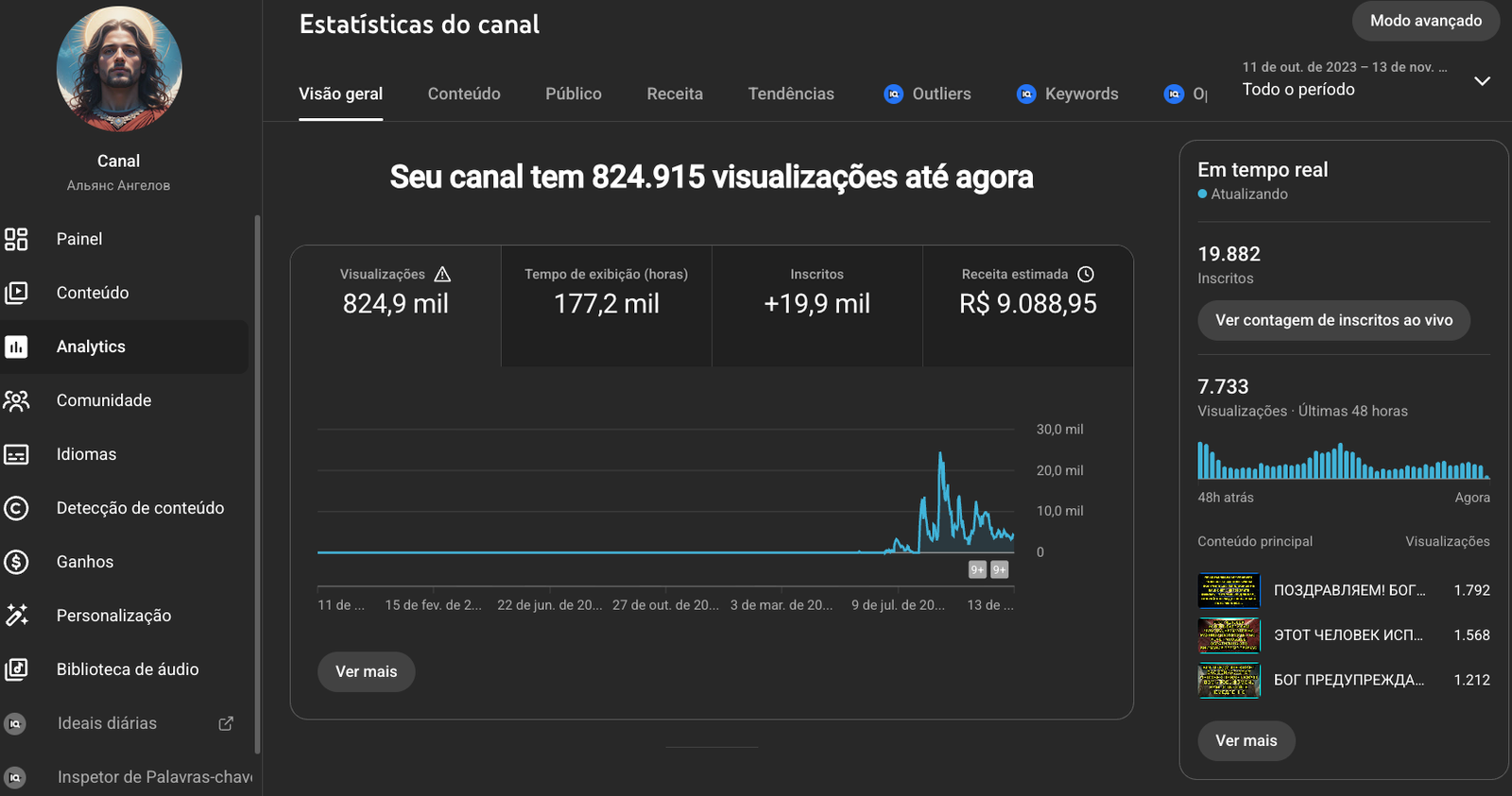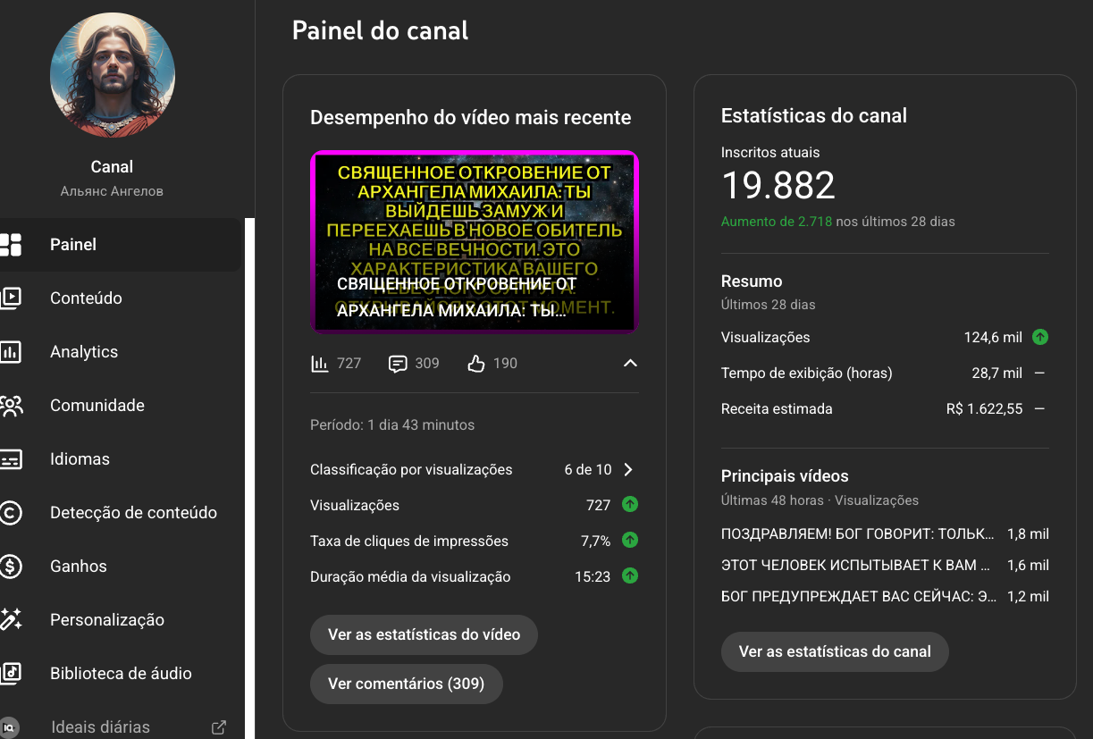 Canal MONETIZADO Mensagem dos Anjos Russo com 33 mil inscritos