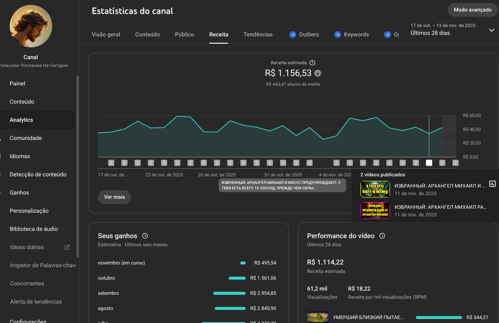 Canal MONETIZADO mensagem dos Anjos em Russo com 19.800 inscritos