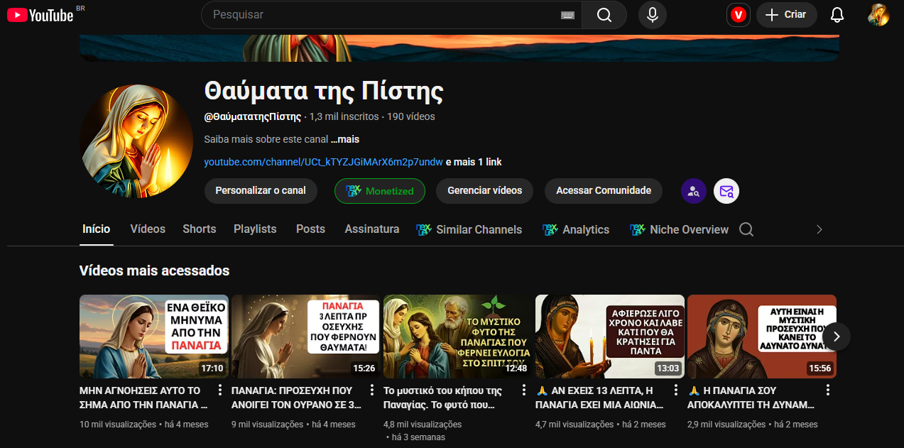 Canal no nicho de Religião com RPM de 13 reais na Grécia