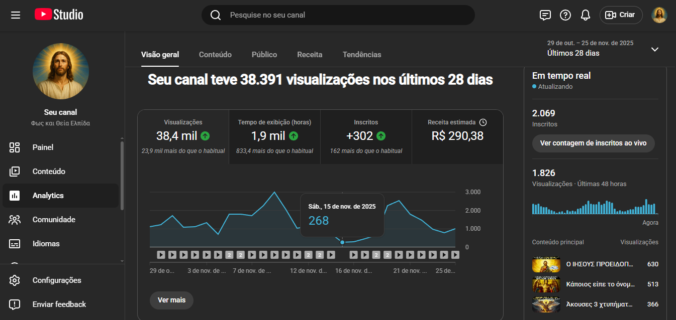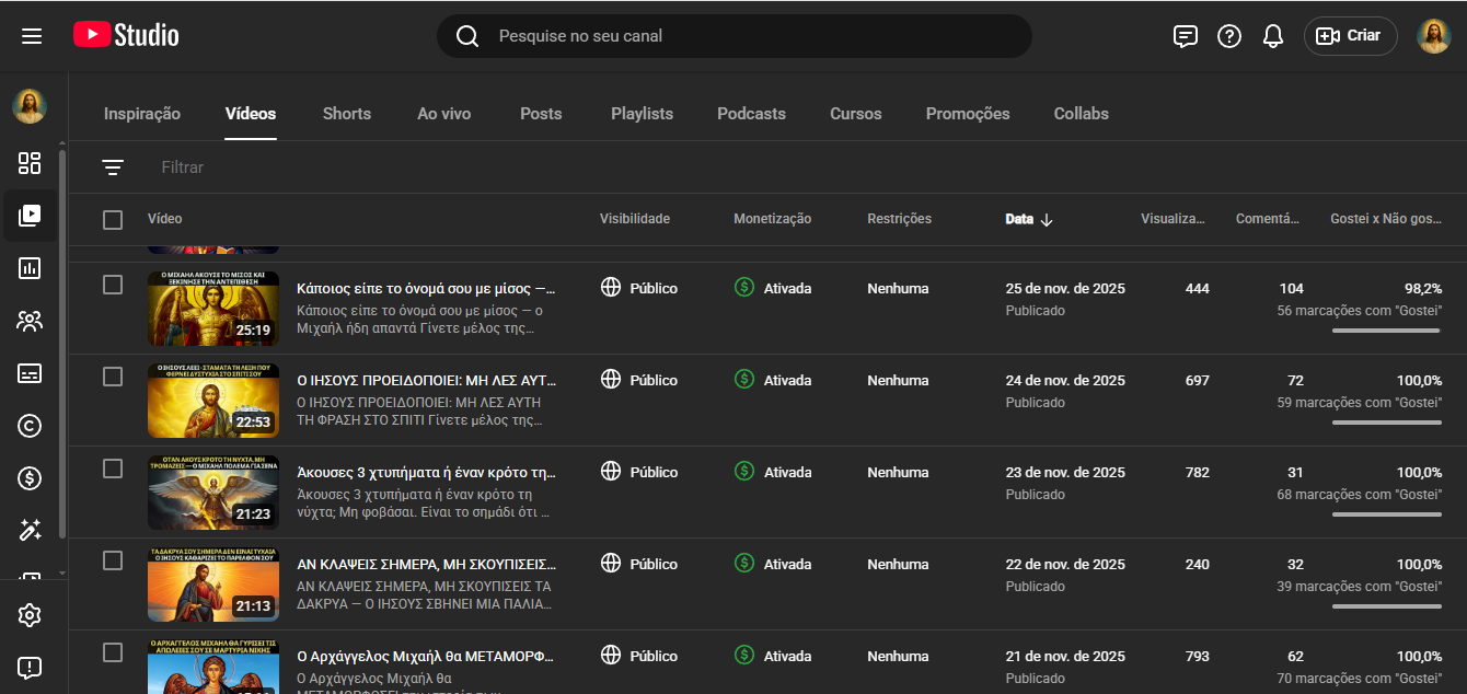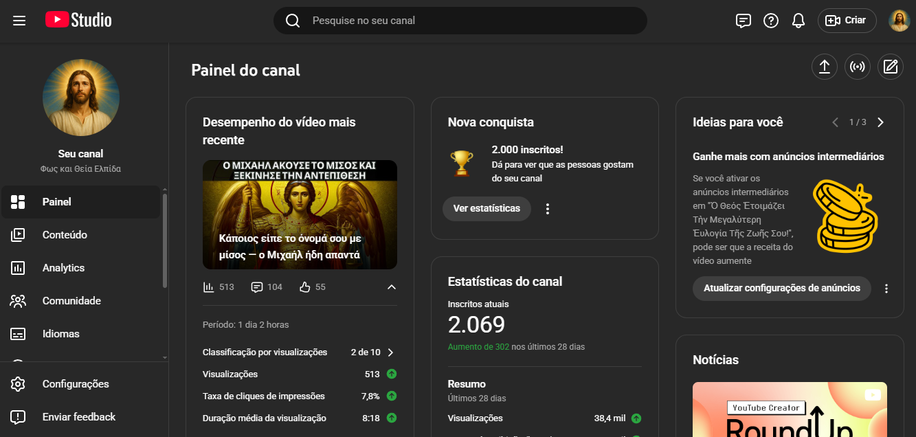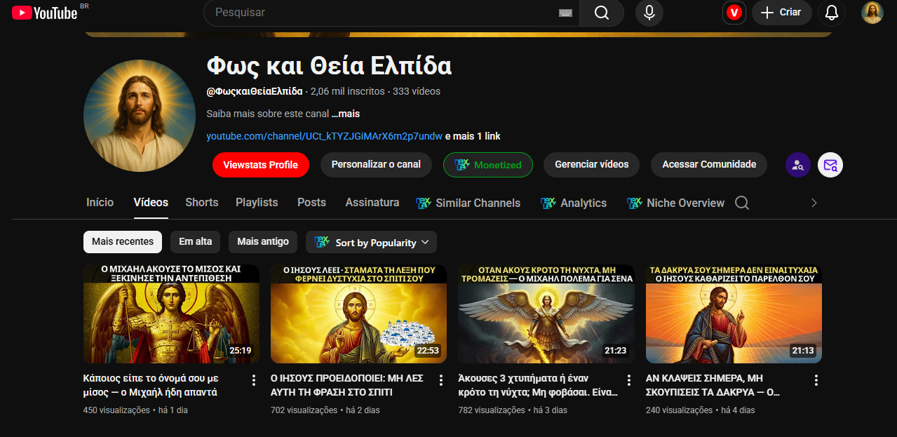 Canal no Nicho de Religião com RPM de 18 reais na Grécia