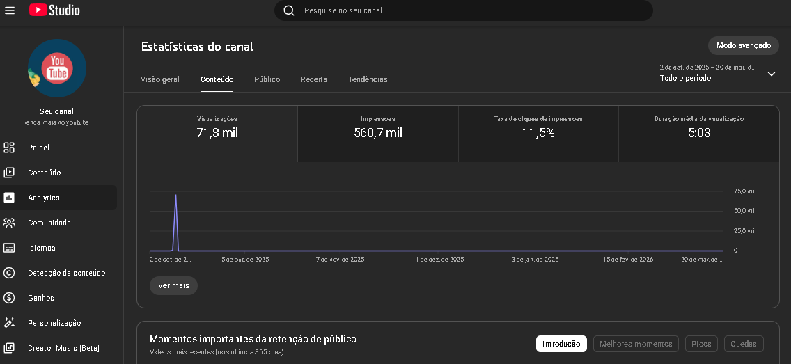 - Link da Conta: https://www.youtube.com/channel/UCSh4cHlIGNIVcysAOi-Wt6A