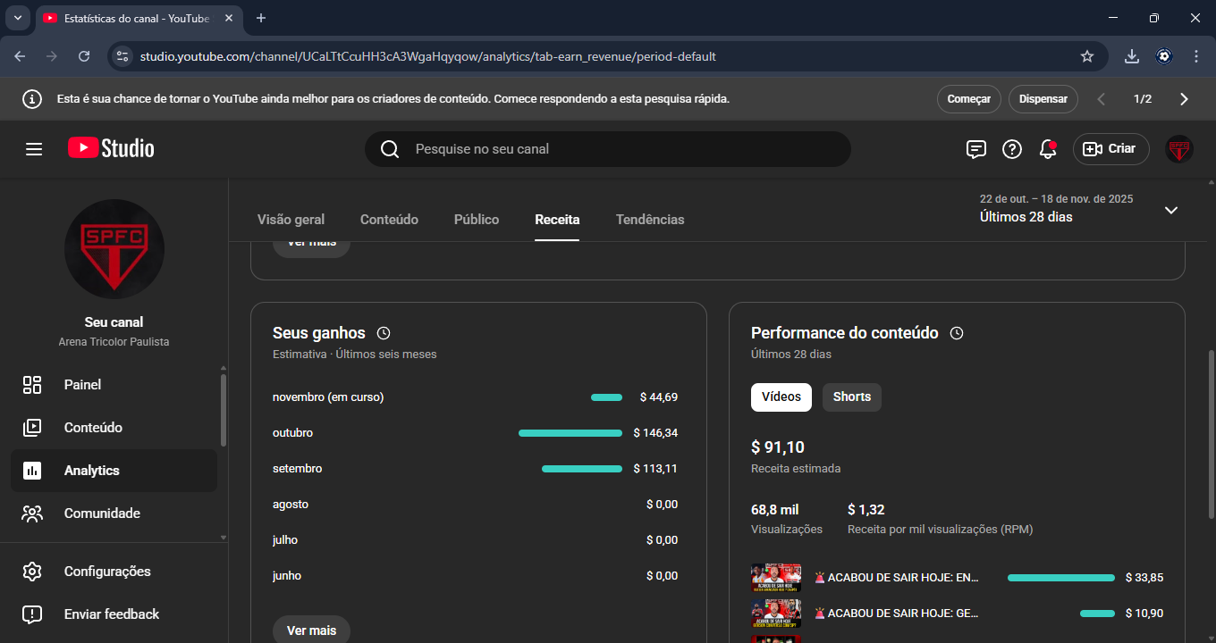canal monetizado, motivo da venda : mudando de subnicho e estou vendendo alguns canais meus de futebol