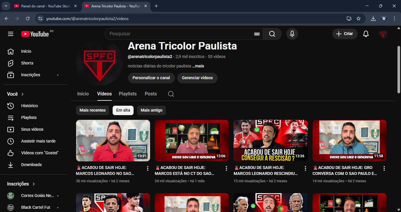 Canal YouTube Monetizado GREMIOHJ ‧ 30 mil inscritos ‧ 1,1 mil vídeos +9milhões de views
