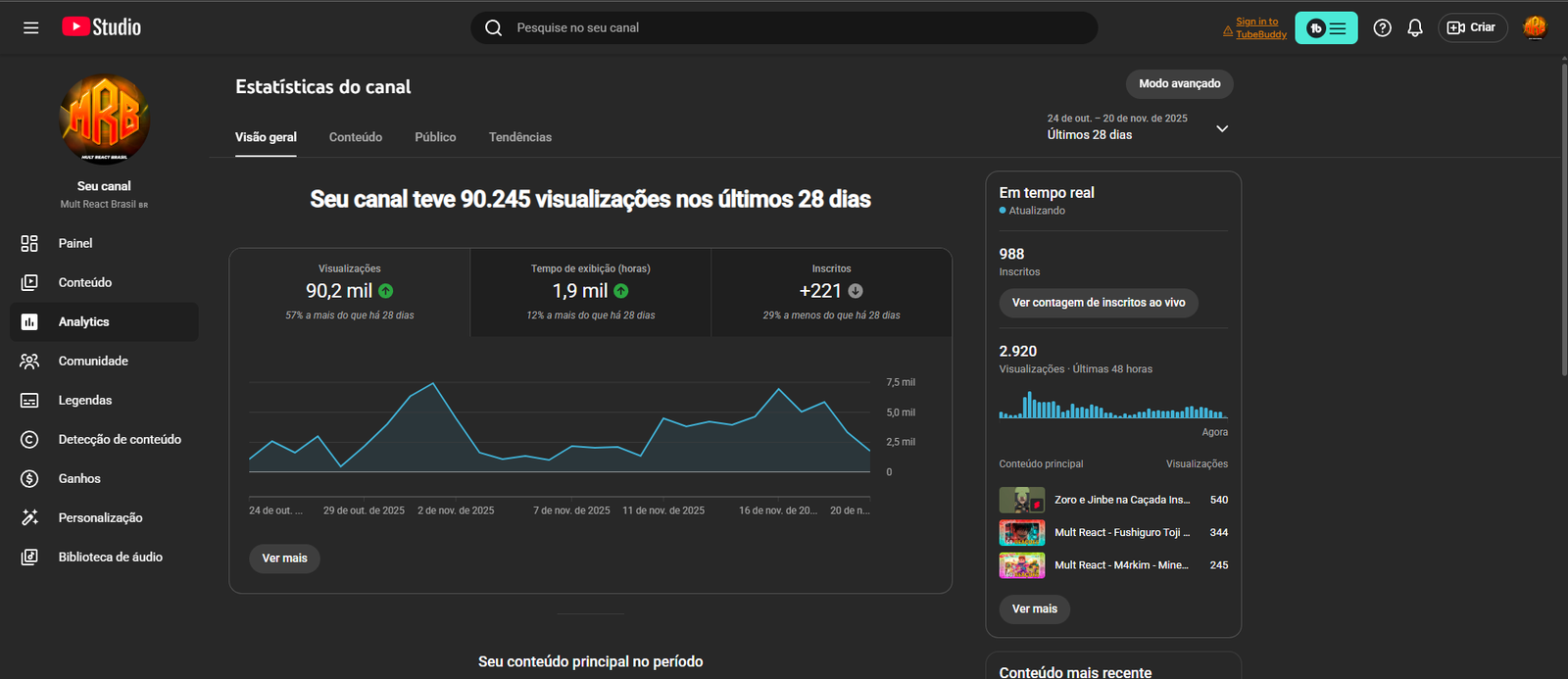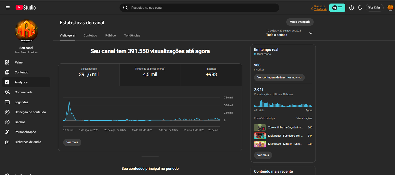 Canal “Mult React Brasil” 978 inscritos, canal muito quase monetizado!