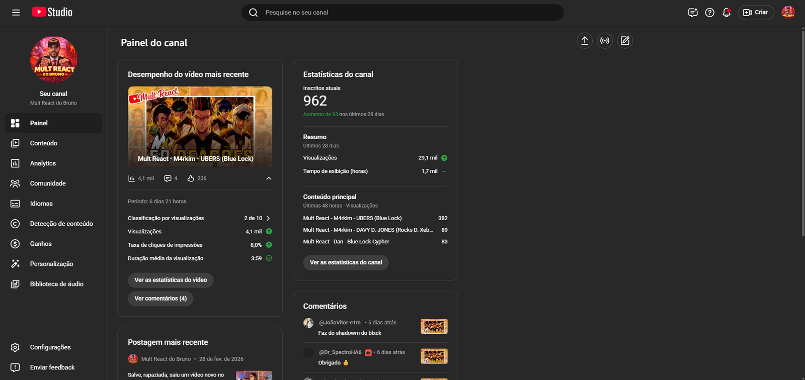 - Link da Conta: https://www.youtube.com/@MultReactdoBruno
