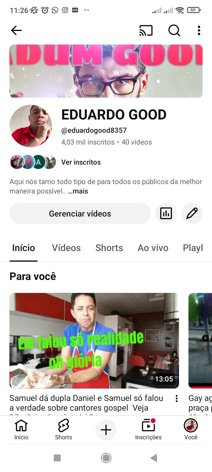 Canal do YouTube com quatro mil seguidores