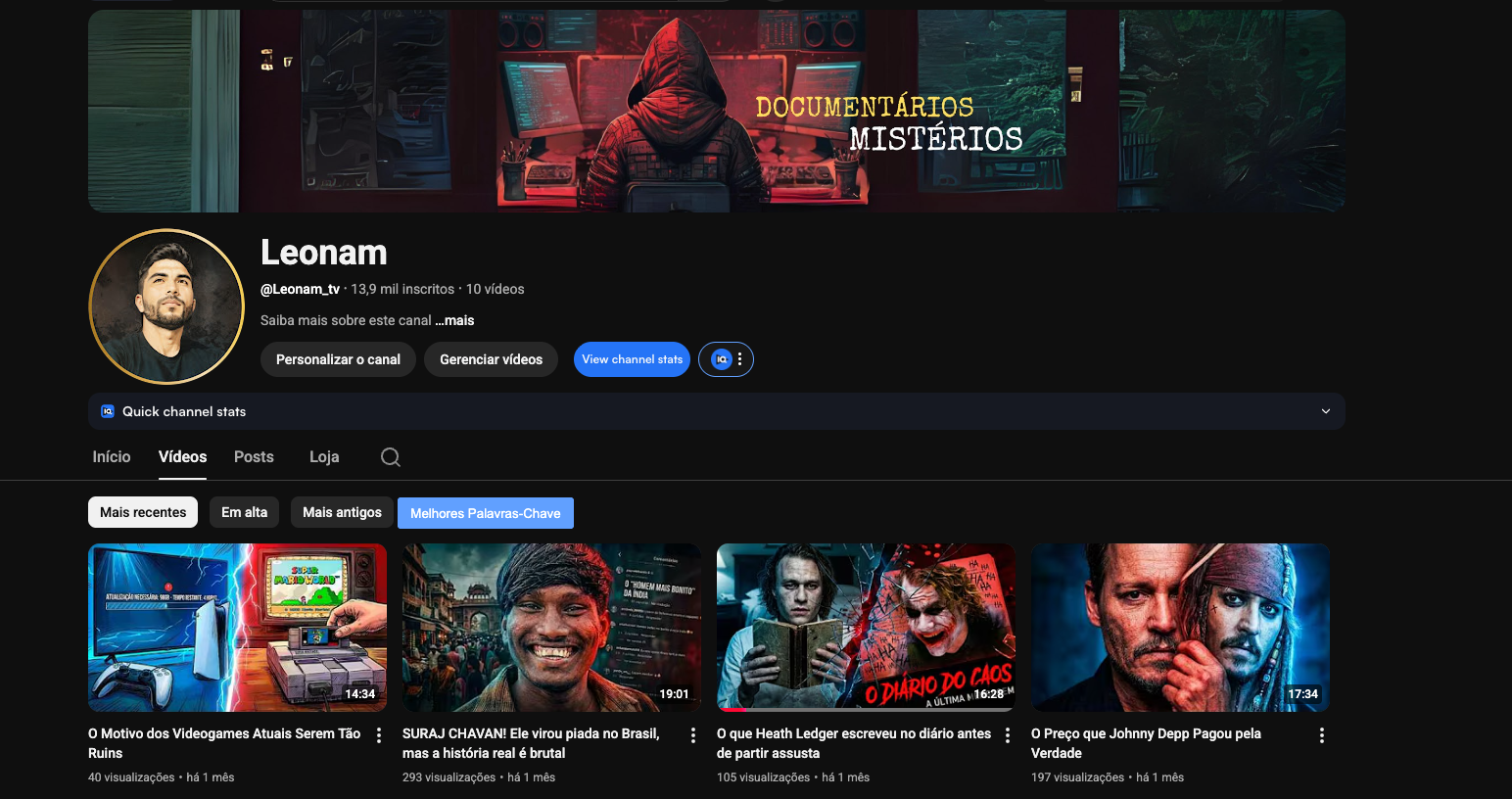 Já tem histórico, autoridade, monetização ativa e um tema que funciona: documentários, mistérios e histórias reais, um dos nichos mais consumidos hoje.