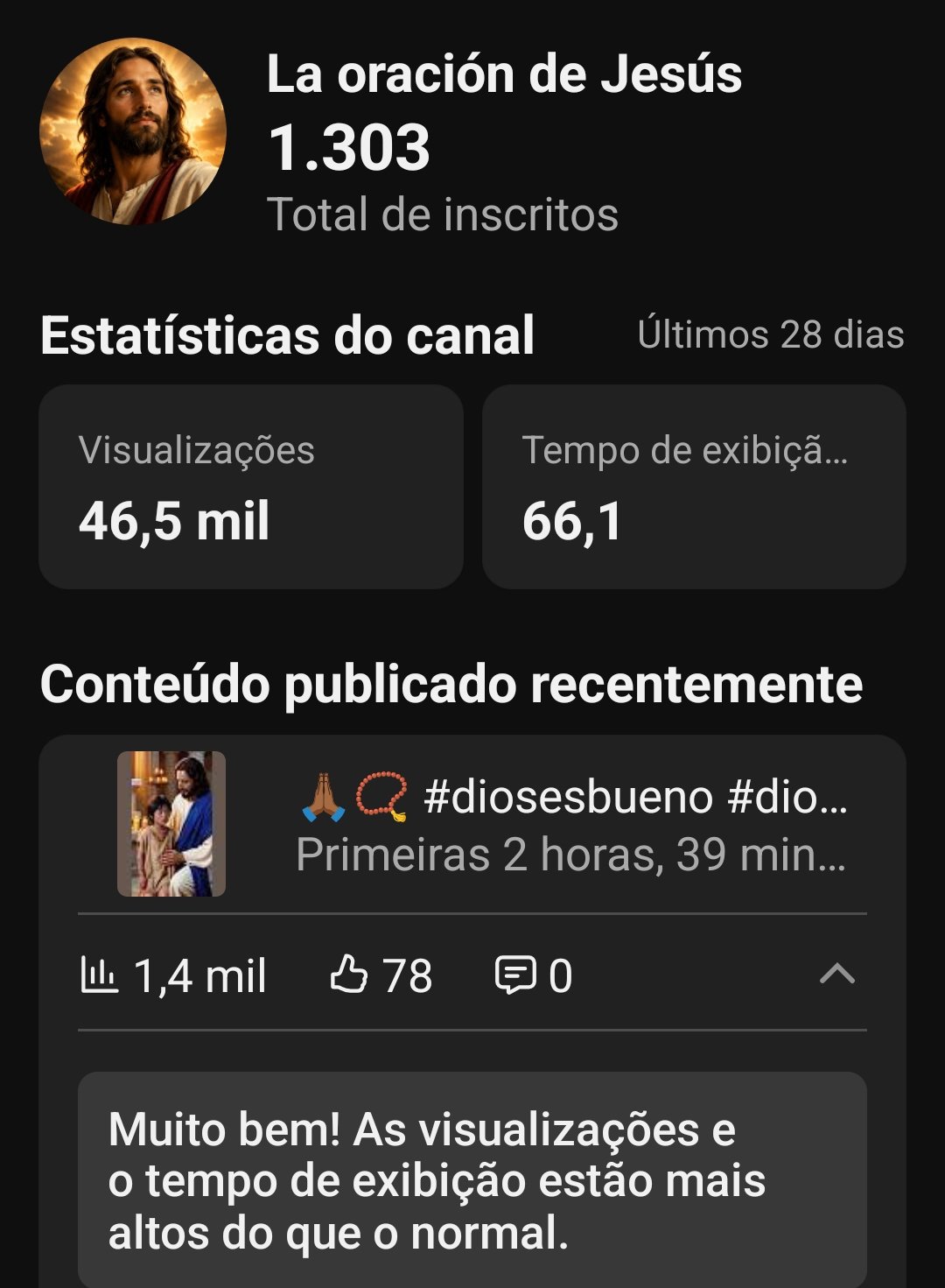 Canal espanhol de religião com 1.300 inscritos canal novo pegando muitos inscritos rápido para você alavancar