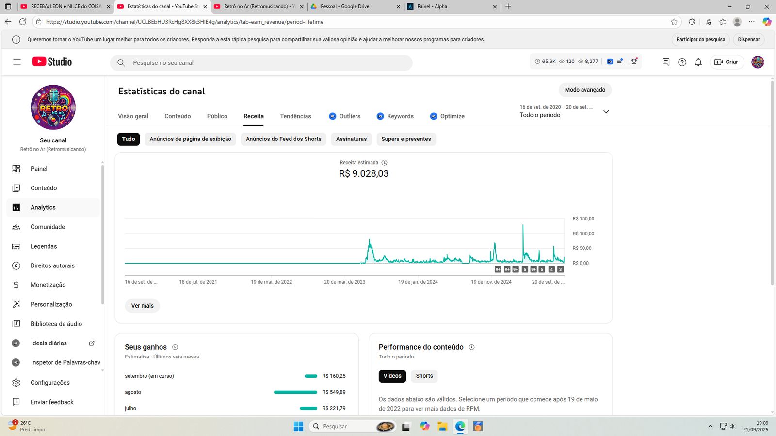 Mais de R$ 9.000 faturados somente com AdSense desde a monetização.