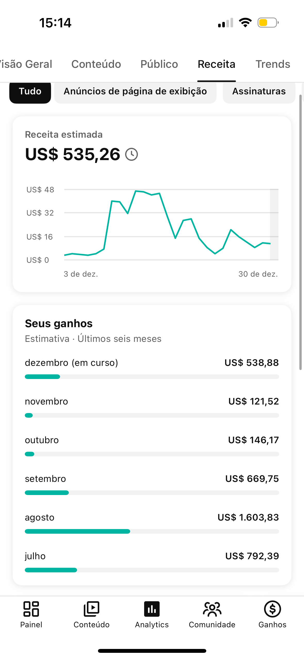 Total faturado no canal é de 38.550 reais desde a criação em maio/25