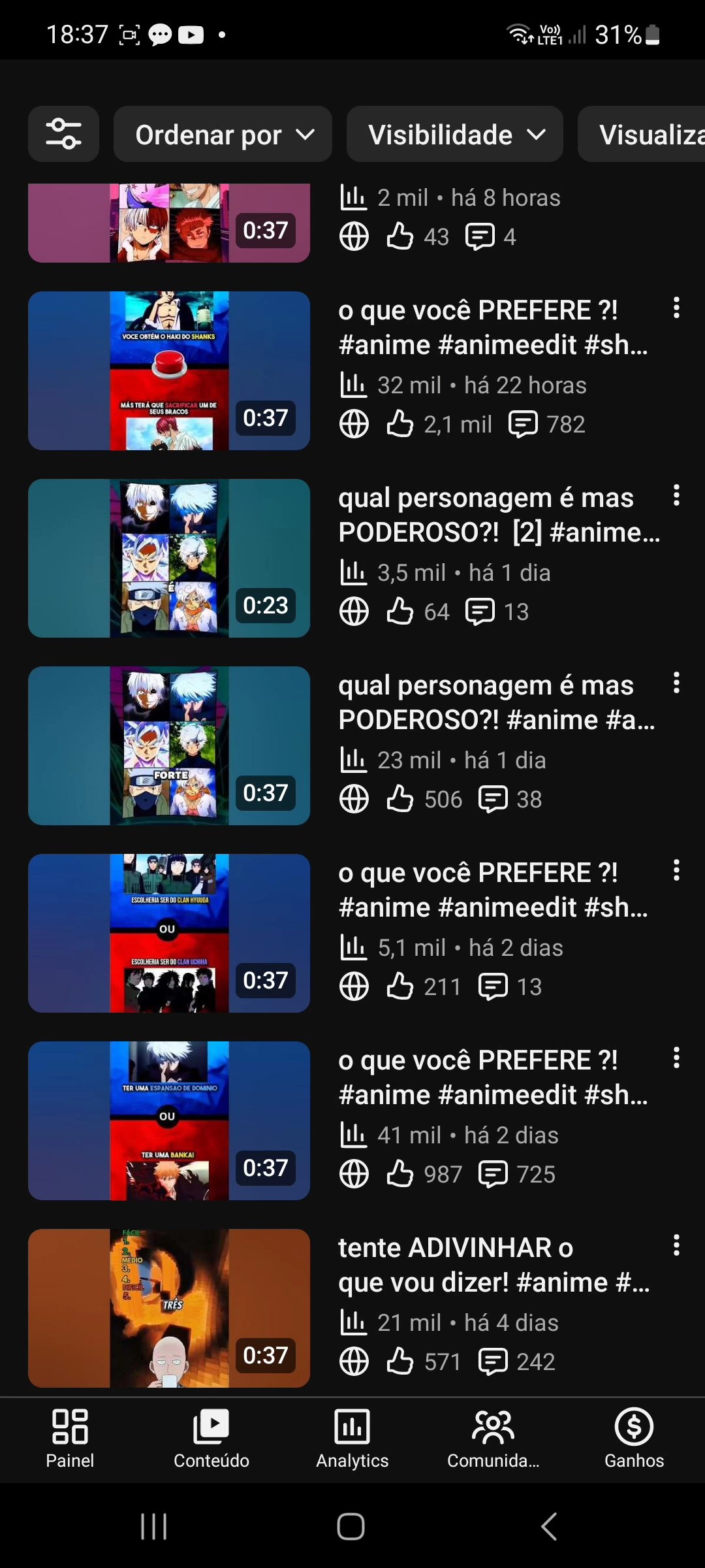 Canal Shorts Anime com mas de 2,500k de inscritos e 626k viw/28 dias!✅️🔥 (falta pouco pra monetizar)