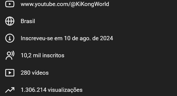 - Link da Conta: https://www.youtube.com/@KiKongWorld