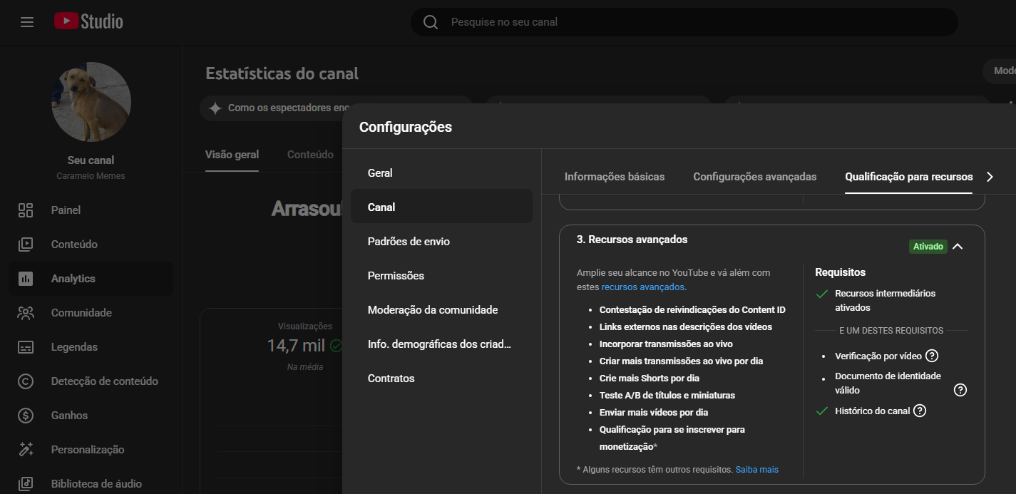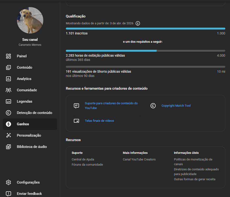 Canal do Youtube em Ascenção quase monetizado.