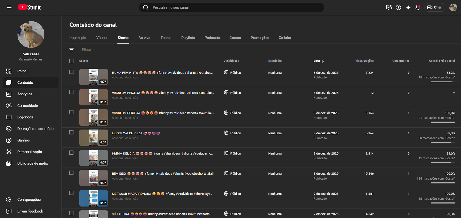 - Link da Conta: https://www.youtube.com/@CarameloMemex