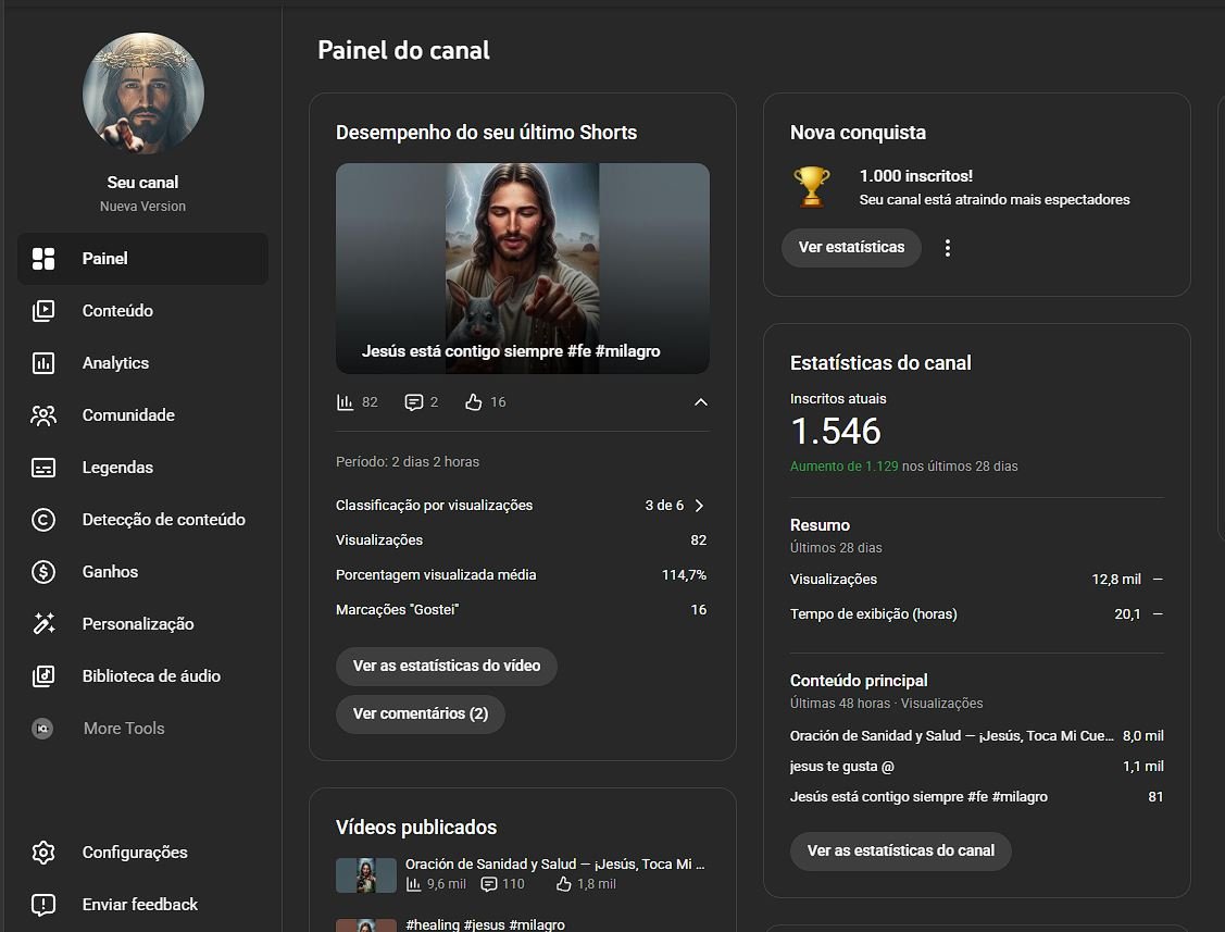 CANAL YOUTUBE – 1.500 INSCRITOS – NICHO RELIGIÃO SHORTS