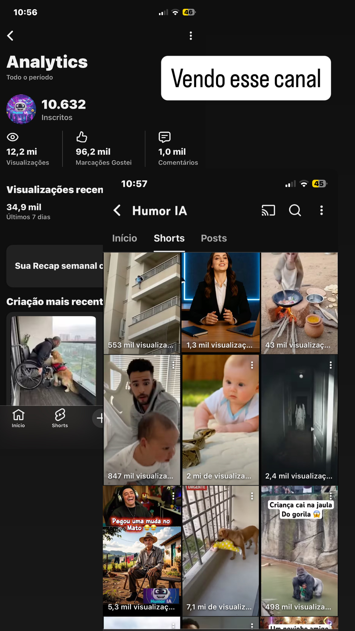 Canal criado a pouco tempo, subi de 0 a 10k inscritos em 1 mês, entregando bem as visualizações