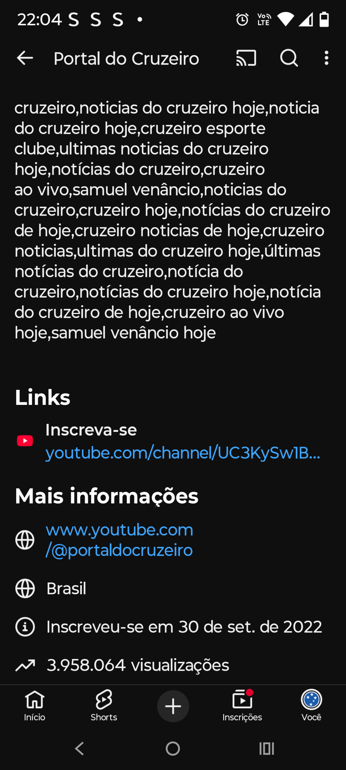 Canal YouTube de Entretenimento – 81k de Inscritos / Orgânico