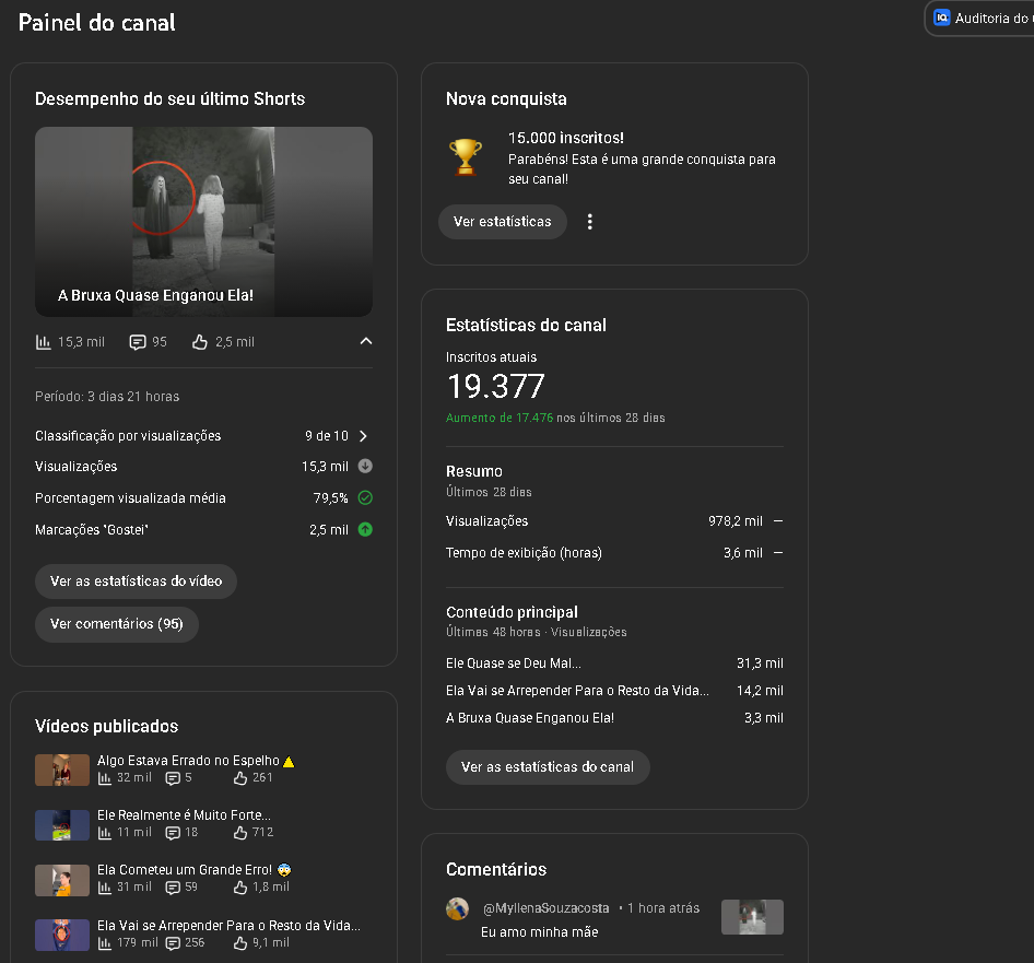 Esse não é um canal comum — ele já mostrou potencial viral e alto alcance em pouco tempo, ideal para quem quer entrar no YouTube com vantagem.