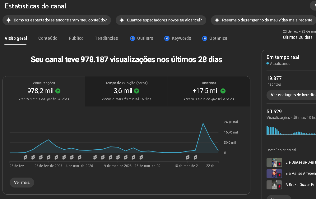 Canal YouTube 20K Inscritos + 1 MILHÃO de Views em 30 Dias 🔥 Crescimento Viral