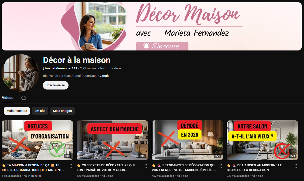 CANAL YOU MONET | 2,92K SUBS👥|+244,6K VIEWS👀| CASA E DECORAÇÃO🏡| IDIOMA FRANCÊS | OPORTUNIDADE ESCALÁVEL 🚀
