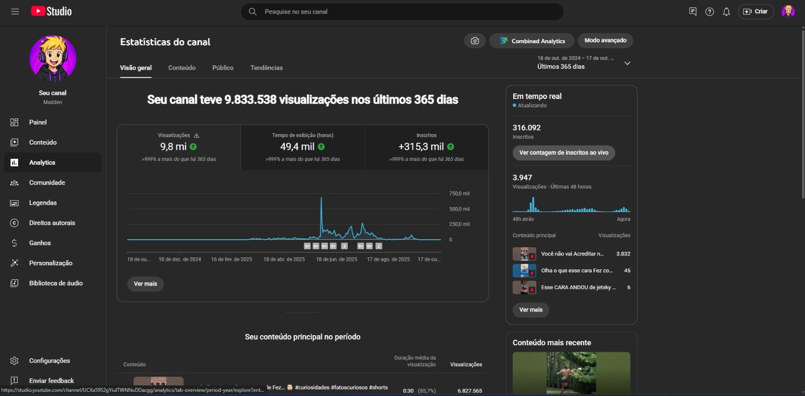 Canal do YouTube com 1.66k de inscritos -pronto para monetizar
