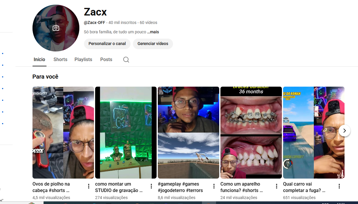 Canal no youtube, 18,6 mil inscritos, sem restrições, nao monetizado por falta de horas