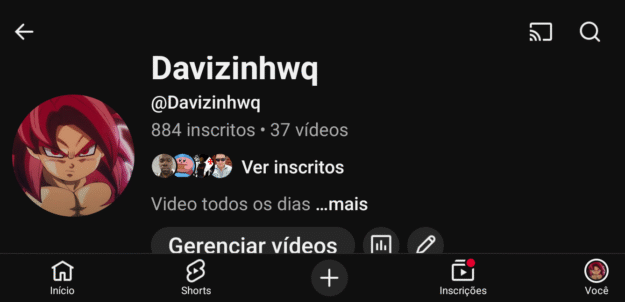 CANAL YOUTUBE 889 inscritos