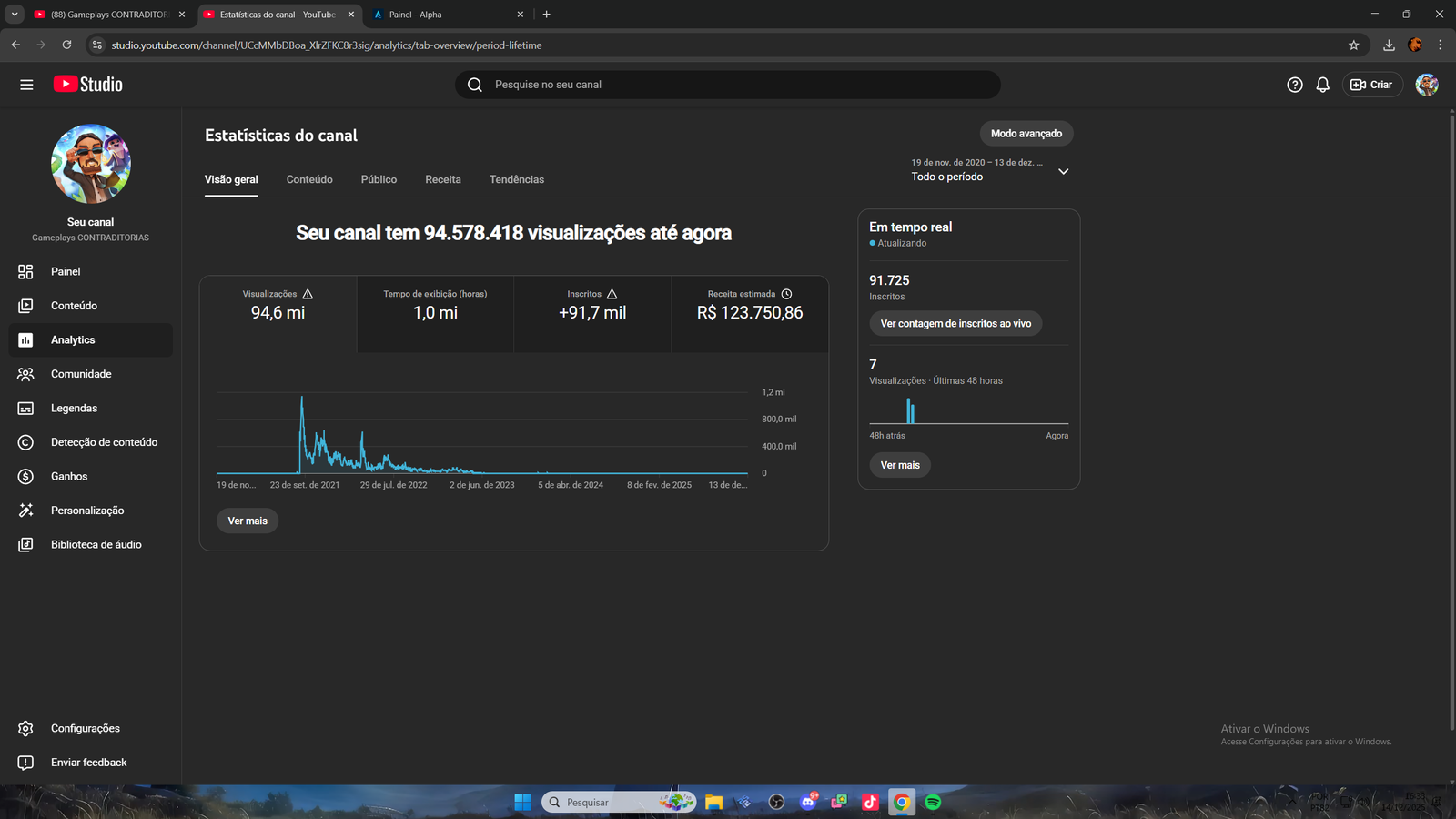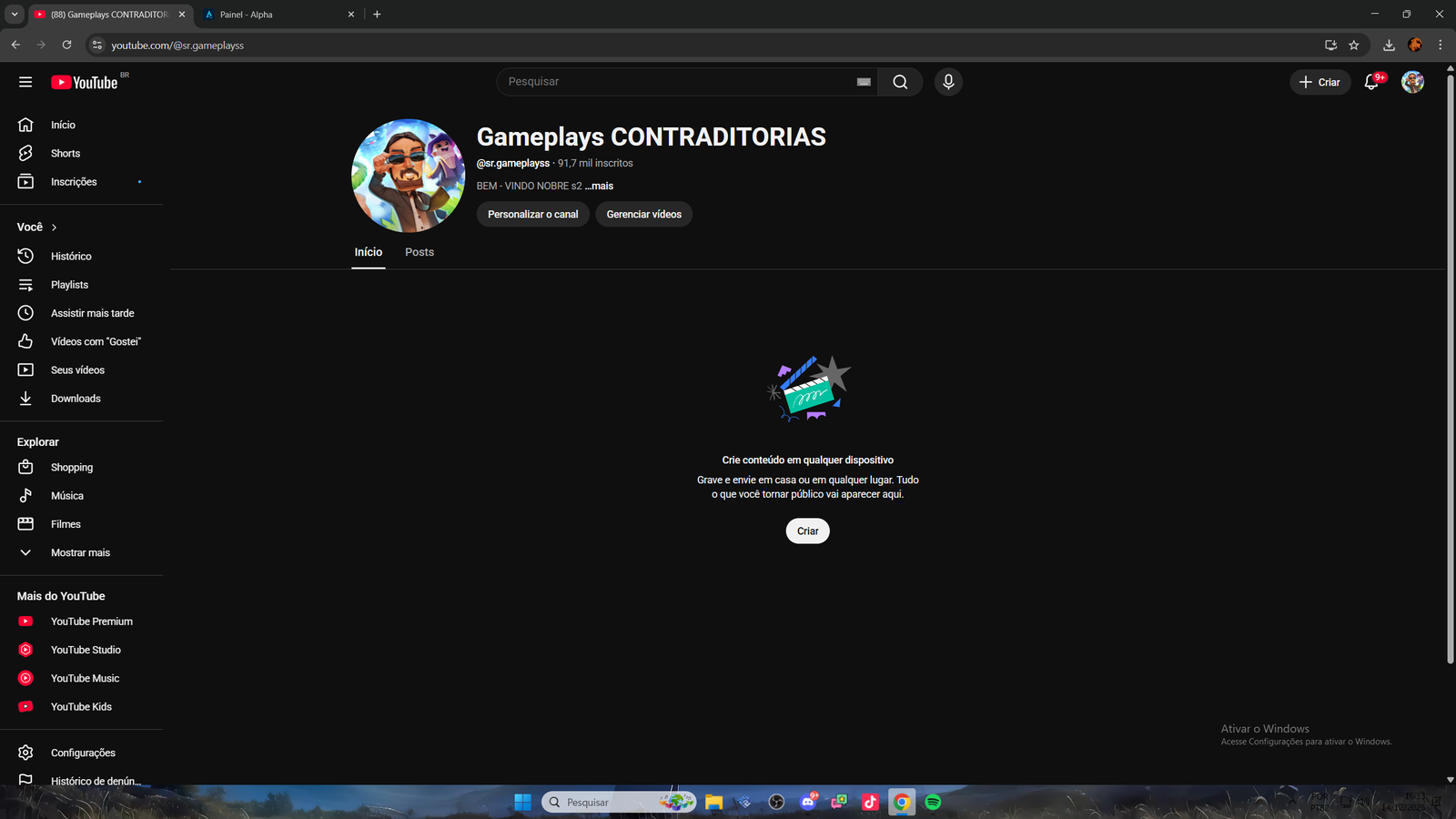 Canal no Youtube com 91.700 Mil Inscritos