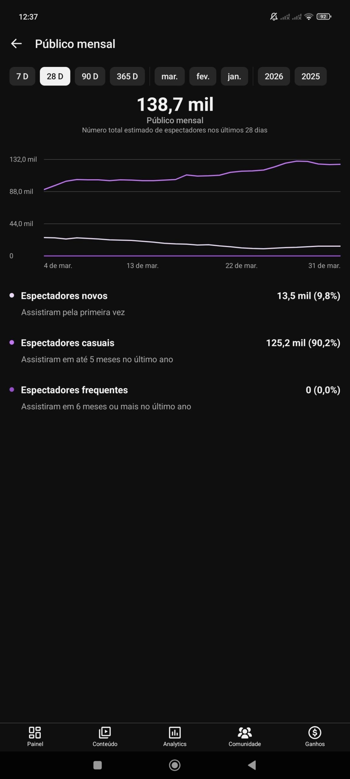 ✅ Base sólida de 192 mil inscritos reais, sem inflacionamento artificial.