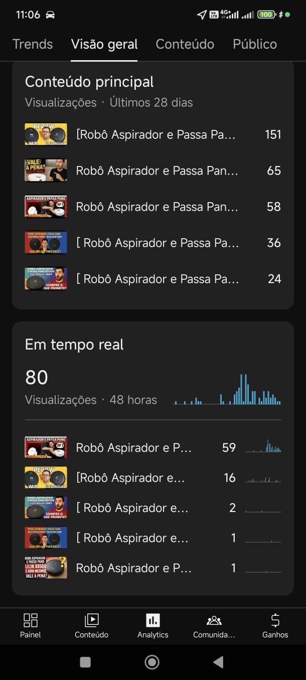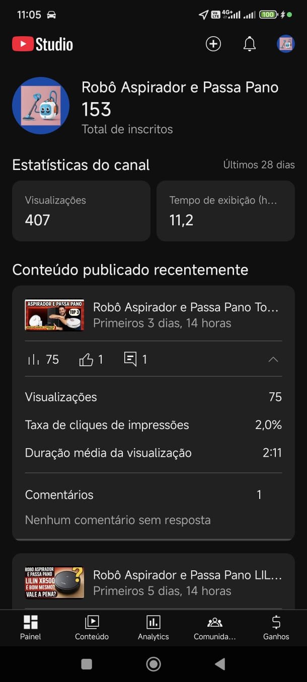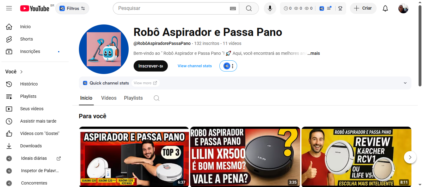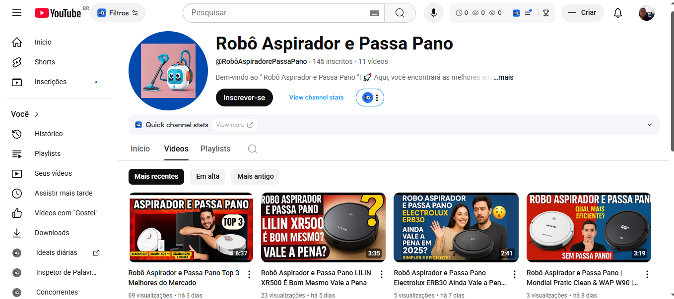 Canal Youtube super nicho ( Robô Aspirador e Passa Pano ) 102 Inscritos;