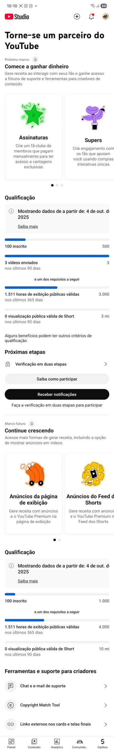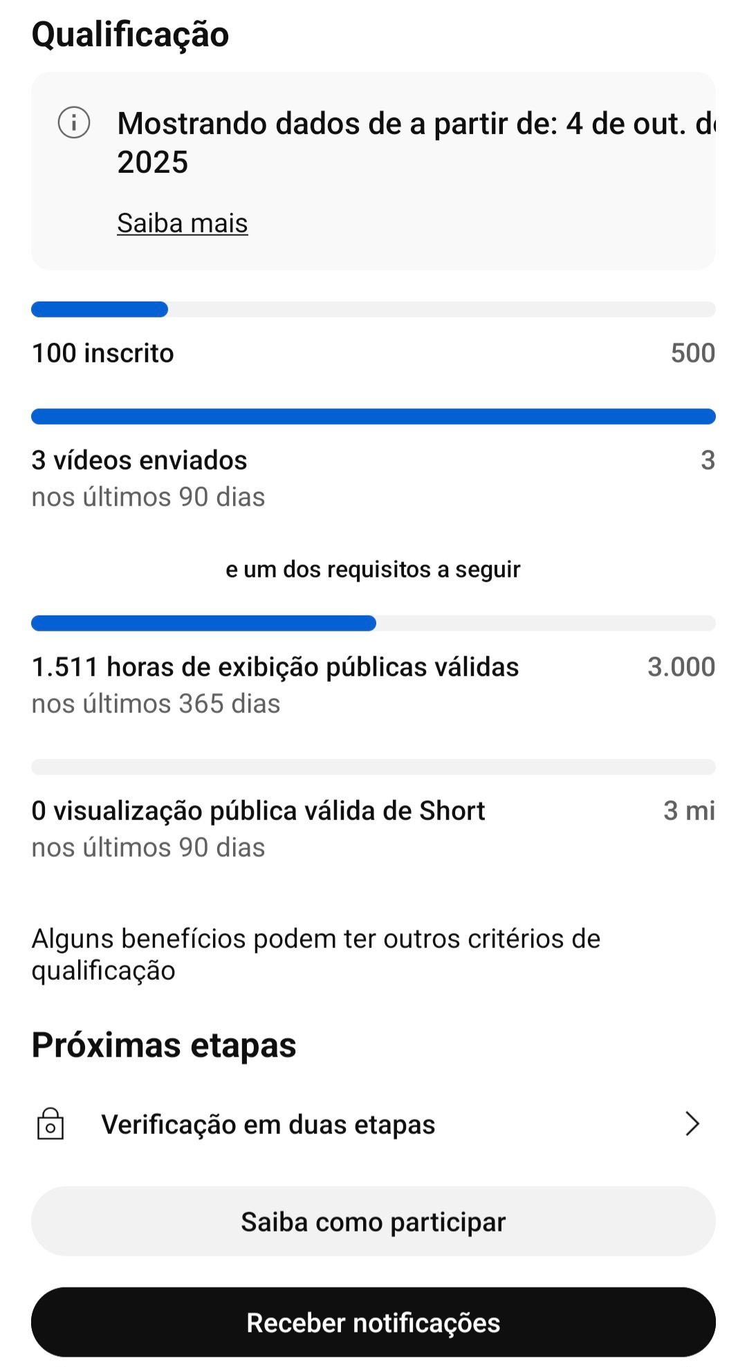 O canal já tá com 1.500 horas assistidas