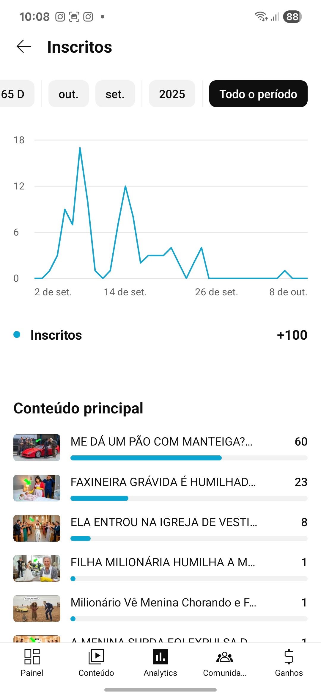 Canal prefeito para crescer rápido. Está com ótimo engajamento para 100 inscritos. Tem vídeo com mais de 6k de views. Só produzir vídeos e monetizar rápido.