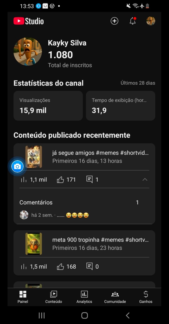 Canal YouTube com mais de 9k de inscritos e 1mi de visualizações