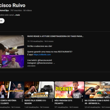 Canal YouTube com 7,11k de inscritos Nichado