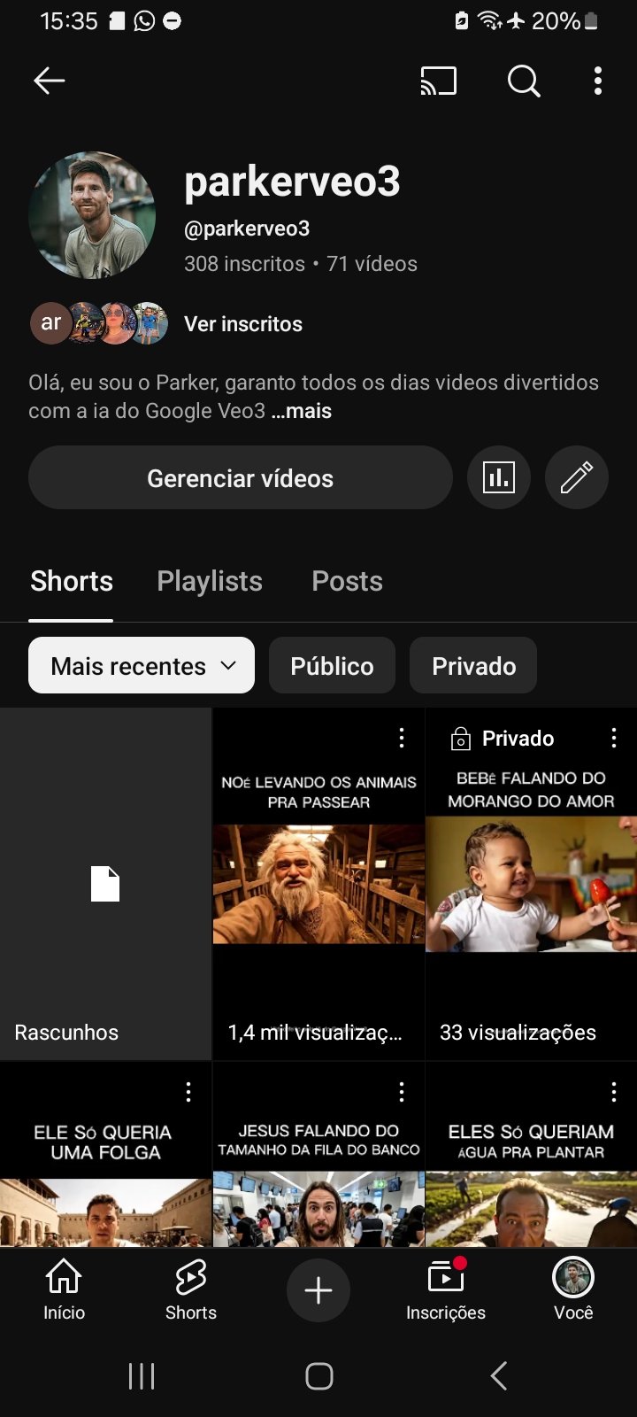 Conta com ótimo engajamento com boa parte dos shorts pegando 2,0 views depois de 1 hora 30 de serem postados, ou seja perfil com ótimo engajamento.