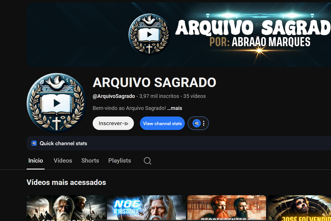 Canal YouTube com 3,79k de inscritos – ARQUIVO SAGRADO