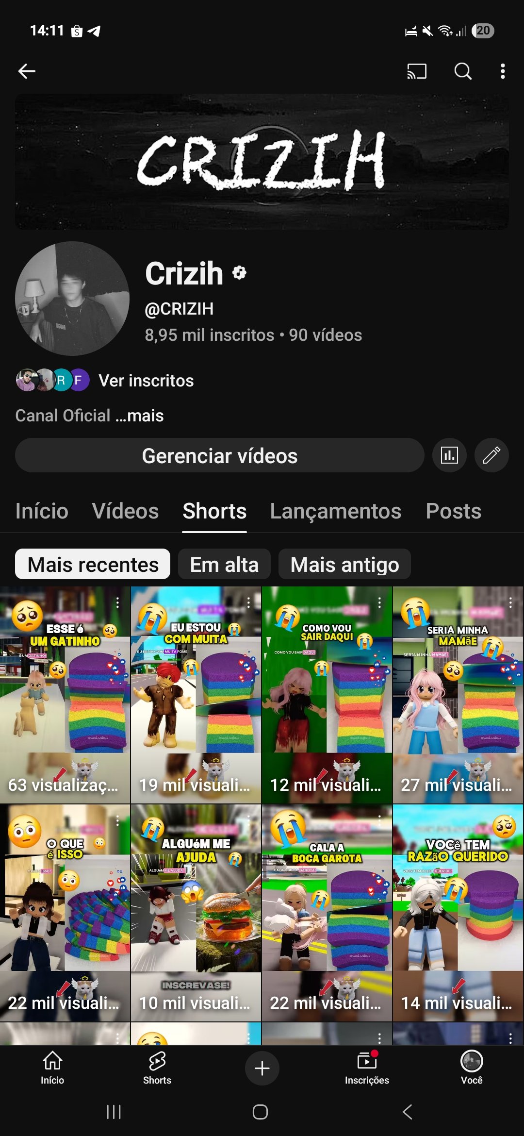 Canal ainda não monetizado, canal de artista verificado, e alguns vídeos de jogos.